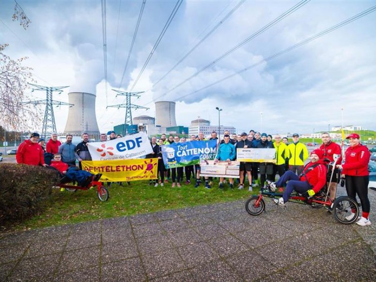 Es handelte sich um die 39. Ausgabe des Telethons, des traditionellen symbolträchtigen Laufs vom Kraftwerk Cattenom bis zur Mehrzweckhalle in Thionville, der am Freitag, dem 5. Dezember 2025, stattfand – mit rund vierzig Teilnehmern beim offiziellen Start, darunter Mitarbeiter von EDF und Partnern, in Begleitung von Les Ptits Potos. Dank der Spenden der Mitarbeiter, ergänzt durch die Unterstützung der Kraftwerksleitung und des Unternehmens Orano, konnten 15.000 Euro zur Unterstützung von Familien gesammelt werden, die von neuromuskulären Erkrankungen betroffen sind. Dieser eingesammelte Betrag zeugt von der Kraft der Gemeinschaft, wenn sich jeder mit Überzeugung engagiert.