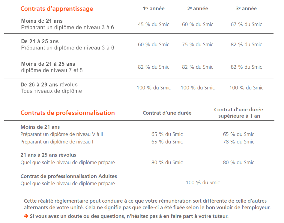 - Alternance : une rémunération adaptée à votre contrat, votre âge et votre niveau d’étude.