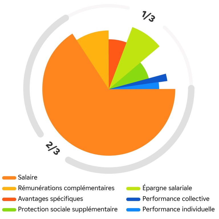- 1/3 part variable : la valorisation concrète de vos performances et des succès collectifs.