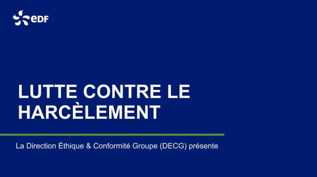 Le groupe EDF ne tolère, au nom du respect de la personne, aucune pratique de harcèlement sous quelque forme que ce soit dans la vie au travail. Cet engagement est inscrit dans la Charte Éthique Groupe.