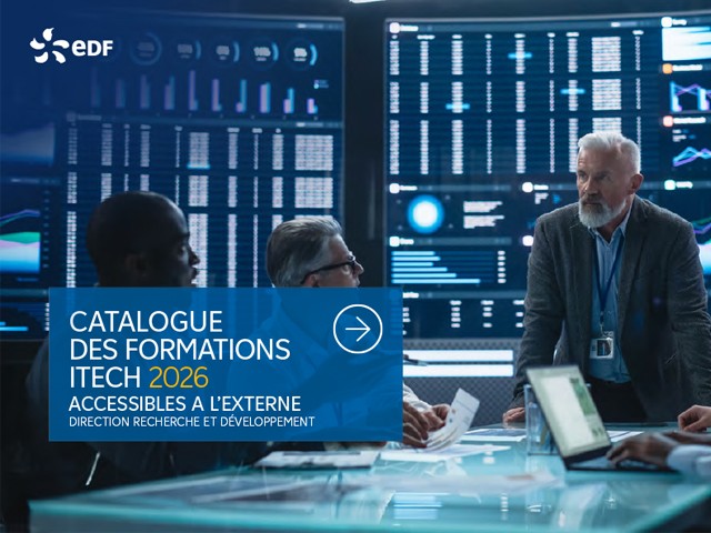 Le catalogue 2026 des formations ITech accessibles à l'externe vient d'être publié sur edf.fr. Parmi les 104 stages proposés à l'interne par l'Institut de Transfert des Technologies de la R&D d'EDF, 51 sont ouverts à des professionnels externes (partenaires, prestataires, entreprises, clients, etc.). Faites-le découvrir en le partageant à vos contacts !