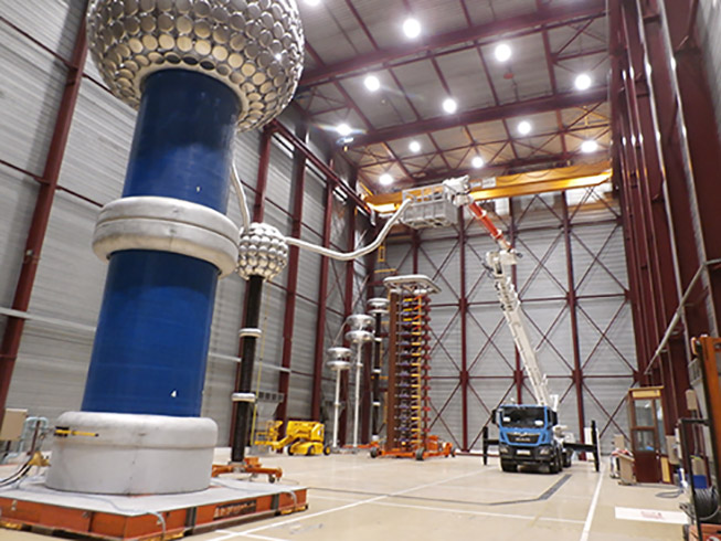 Avec des halls d’essais de grande dimensions pouvant contenir des camions complets, EDF Networks Lab est à même, de vérifier la tenue diélectrique des bras isolants.