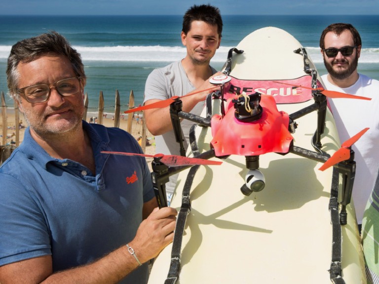 Quand il s’agit de sauver des vies, chaque minute compte. En particulier, les toutes premières, celles que les sauveteurs appellent les "golden minutes". Fabien Farge et David et Anthony Gavend, les trois co-fondateurs de Helper Drone, l’ont bien compris ! Originaires des Landes, ils savent mieux que quiconque que les courants marins peuvent être redoutables si l’on n’agit pas rapidement. Ils ont donc imaginé un drone pour assister les professionnels du secours en mer. Et pas n’importe quel drone ! Conçu spécialement pour résister aux conditions climatiques extrêmes, aux vents violents et à la houle, cet objet volant parfaitement identifié repère les personnes en danger et dépose une bouée autogonflable à proximité. Il envoie ensuite des informations de navigation aux sauveteurs pour aider à retrouver rapidement les victimes. Une caméra haute qualité permet également de contrôler à distance l’état des personnes à secourir.