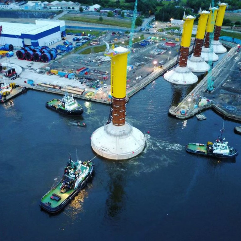 Composé de 5 éoliennes de 8,3 MW, le projet pilote de Blyth a été mis en service en 2018. D’un poids unitaire de plusieurs milliers de tonnes, les fondations en béton des éoliennes du projet de Blyth ont été construites en cale sèche, puis transportées par flottaison jusqu’au site d’implantation.