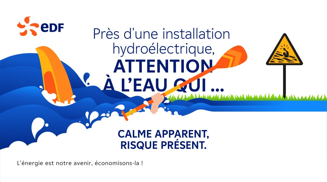 « Calme apparent, risque présent », la campagne de prévention EDF pour sensibiliser le public aux risques liés aux aménagements hydroélectriques.
