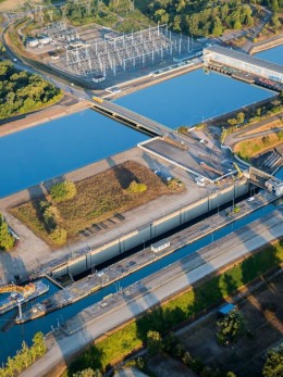 La centrale de Strasbourg est un aménagement dit "au fil de l'eau". Mise en service en 1970, elle est équipée de 6 groupes de production. Associée aux autres aménagements hydroélectriques sur le Rhin, elle permet de produire l'électricité nécessaire à la moitié de l'Alsace.