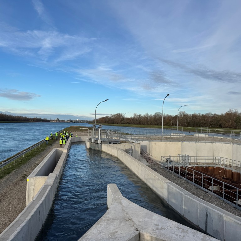 Les travaux de la passe à poissons de Rhinau sont maintenant terminés. Les derniers réglages sont en cours afin que l'ouvrage soit pleinement opérationnel au printemps 2026, début de la période de migration des poissons.