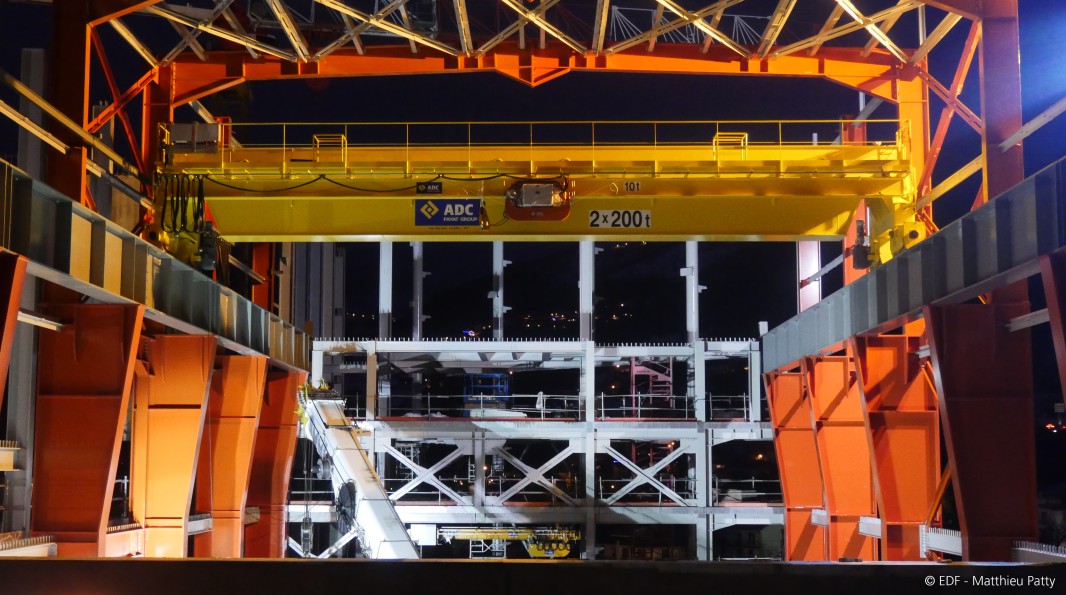 Un pont roulant capable de soulever jusqu'à 400 tonnes a été installé dans la nouvelle centrale. C'est une étape clé dans le déroulement du chantier : c'est en effet cet impostant système de manutention qui va permettre le montage des pièces qui composent les installations de production !