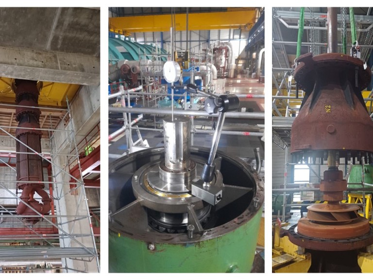 A titre préventif, tous les dix ans, le site doit procéder à une visite des pompes CEX des deux unités. Depuis de nombreuses années maintenant, ce chantier est réalisé au sein du service Travaux. La pompe, avec le moteur, mesure 13 mètres de haut et pèse 16,8 tonnes, sans compter le moteur de 11 tonnes à lui tout seul ! Des moyens de levage et de manutention spécifiques sont utilisés pour la sortir de son emplacement à 0 mètre, la hisser jusqu’à 15 mètres en passant par une trémie étroite et séparée de chaque étage. Une fois sortie de son lit, la pompe est démontée, expertisée, certaines pièces sont usinées, soudées… Tout cela durant 6 semaines ! Une fois extraite de son emplacement et le moteur démonté, la pompe est quant à elle entreposée sur le wagon dans la travée de manutention de l’unité de production n°2.