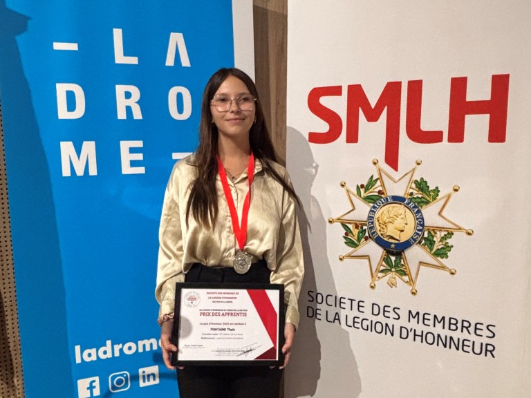 Le lundi 22 septembre, Thais Fontaine, apprentie technicienne à la centrale nucléaire du Tricastin, a reçu une médaille de la société des membres de la légion d'honneur (SMLH)* pour son engagement dans le voie de l'apprentissage.