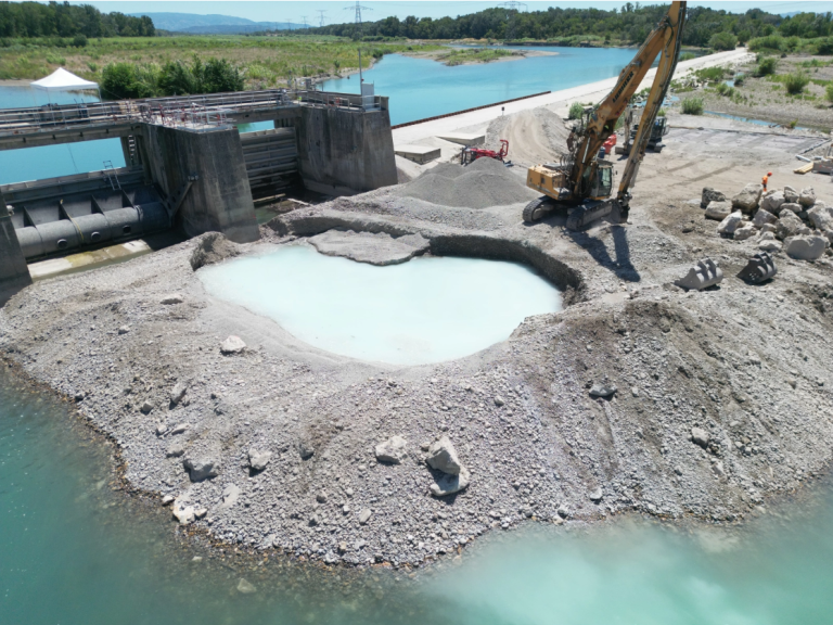 En août 2025, nous vous présentions les futurs travaux de la passe à poissons du barrage de Bonpas qui amélioreront la continuité piscicole. Découvrez en vidéo la première étape au cœur du chantier !